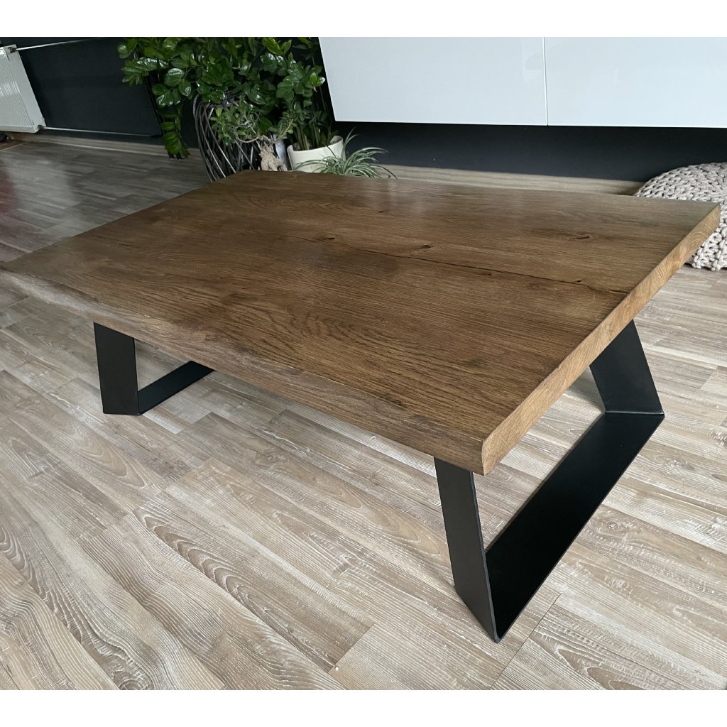 Moderný stôl z prírodného materiálu s modernými kovovými nohami dotvorí ideálnu kombináciu s našim Jedálenským stolom - OAK, ktorý má rovnaký dizajn a prevedenie. Pri zariaďovaní jedálne s obývacím priestorom, tak vytvoríte štýlový priestor v jednej konzistentnej línii. Masívne dubové drevo sme ručne opracované s ponechanými prasklinami, aby sme čo najviac zvýraznili prirodzenosť a jedinečnosť dreva. Drevo je ošetrené prírodným olejovým náterom.